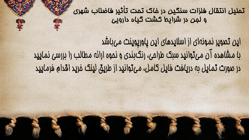 پاورپوینت تحلیل انتقال فلزات سنگین در خاک تحت تأثیر فاضلاب شهری و لجن در شرایط کشت گیاه دارویی