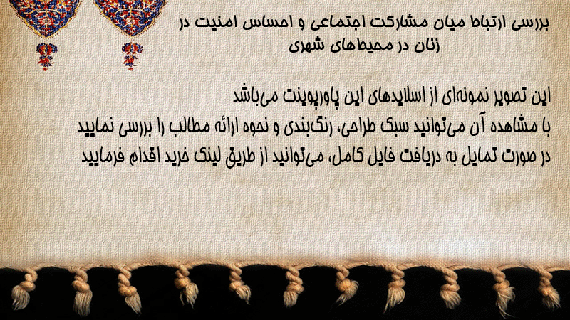 پاورپوینت بررسی ارتباط میان مشارکت اجتماعی و احساس امنیت در زنان در محیطهای شهری