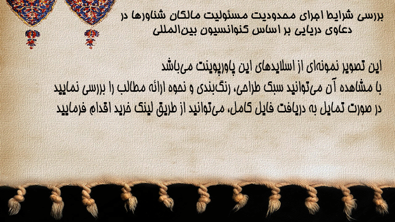 پاورپوینت بررسی شرایط اجرای محدودیت مسئولیت مالکان شناورها در دعاوی دریایی بر اساس کنوانسیون بینالمللی